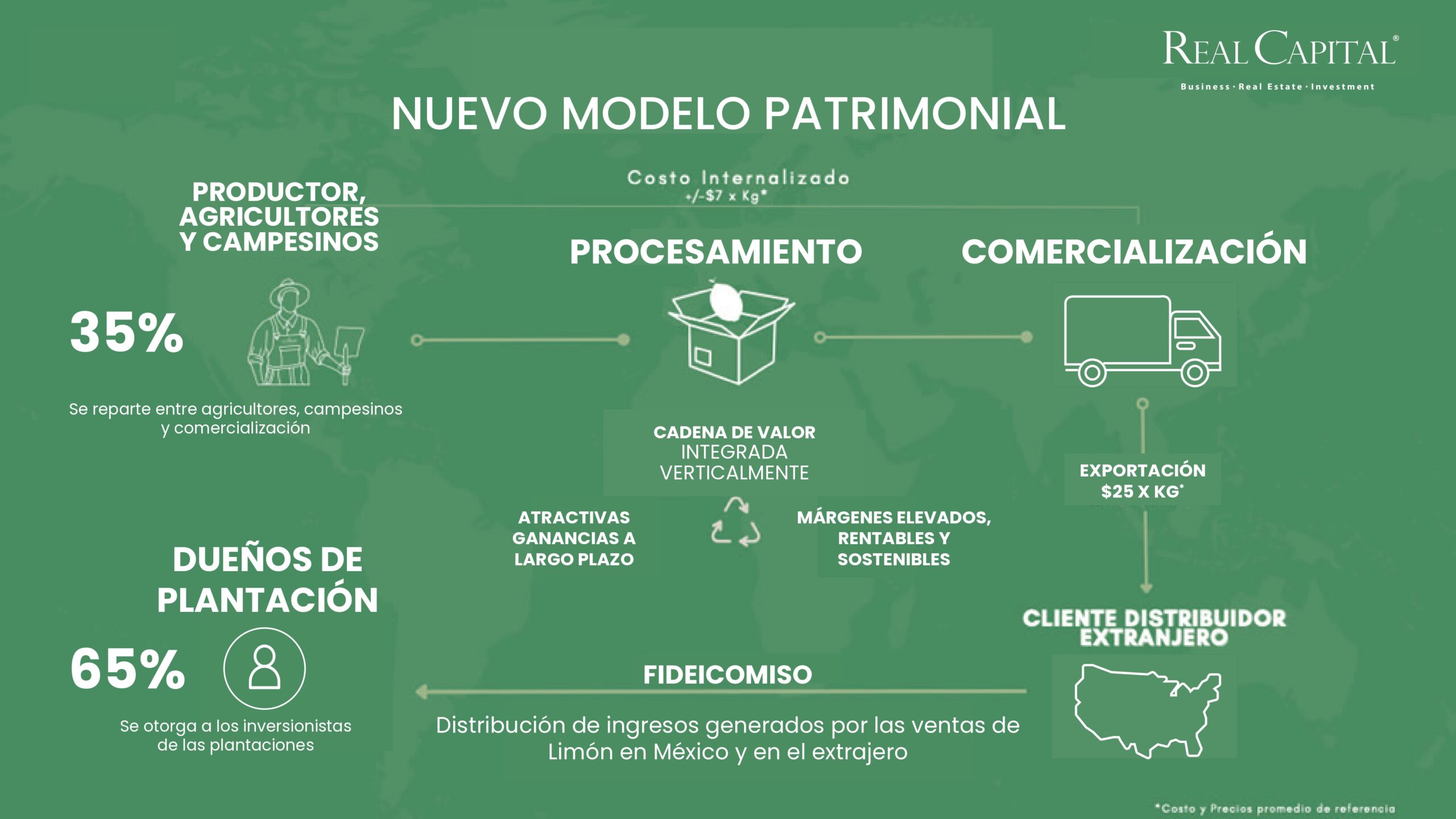 • Rendimietos anuales hasta 52% (Aprovechando la tendencia en Tierras Agrícolas y Bebidas Spirit).