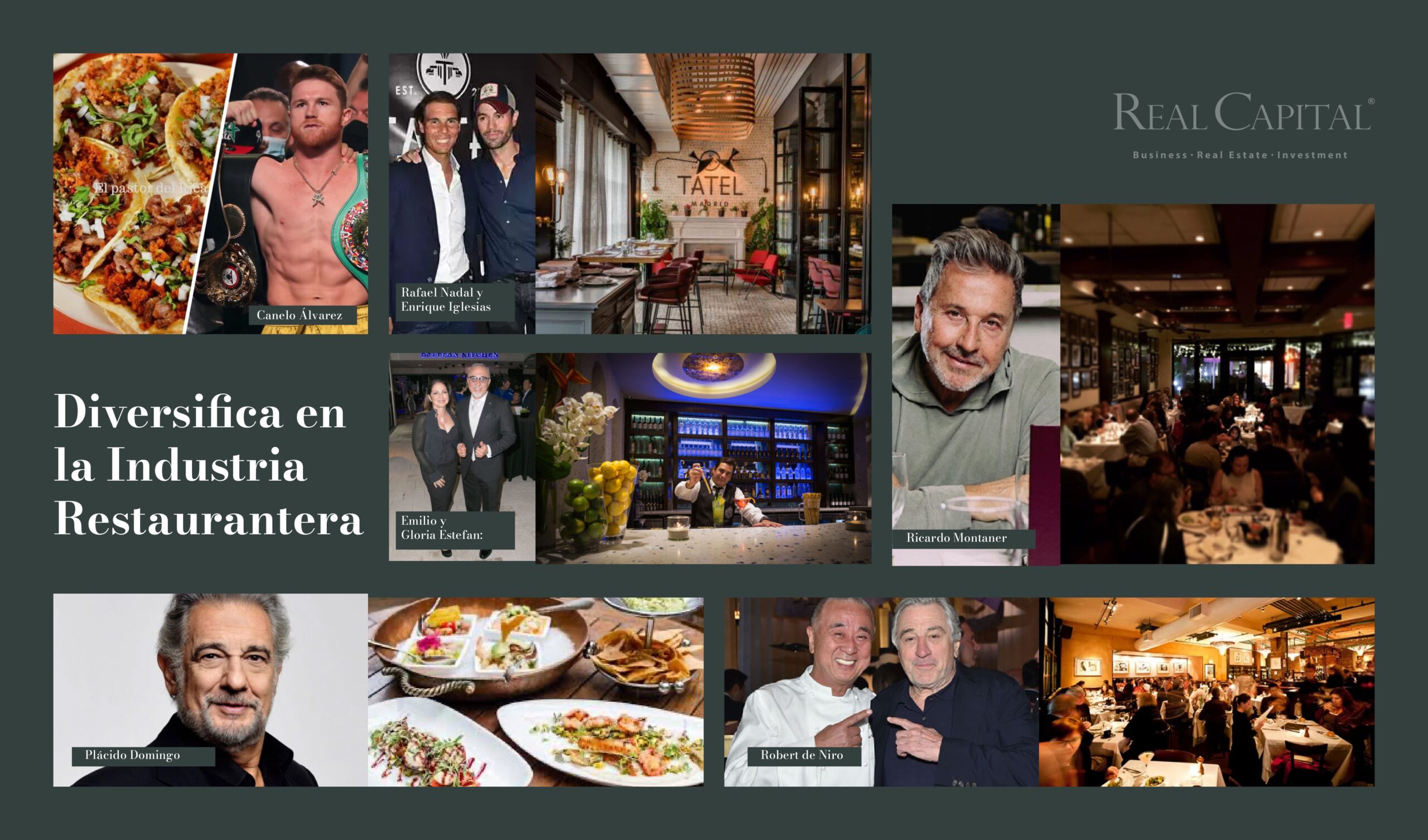 Mientras algunos abren restaurantes para operar, los grandes empresarios e inversionistas entienden que la gastronomía también es una poderosa forma de generar ingresos pasivos. Figuras como Robert De Niro, Carlos Slim, Gloria y Emilio Estefan, Canelo Álvarez, Rafael Nadal, entre otros, ya son parte de esta tendencia que combina experiencia y rentabilidad.